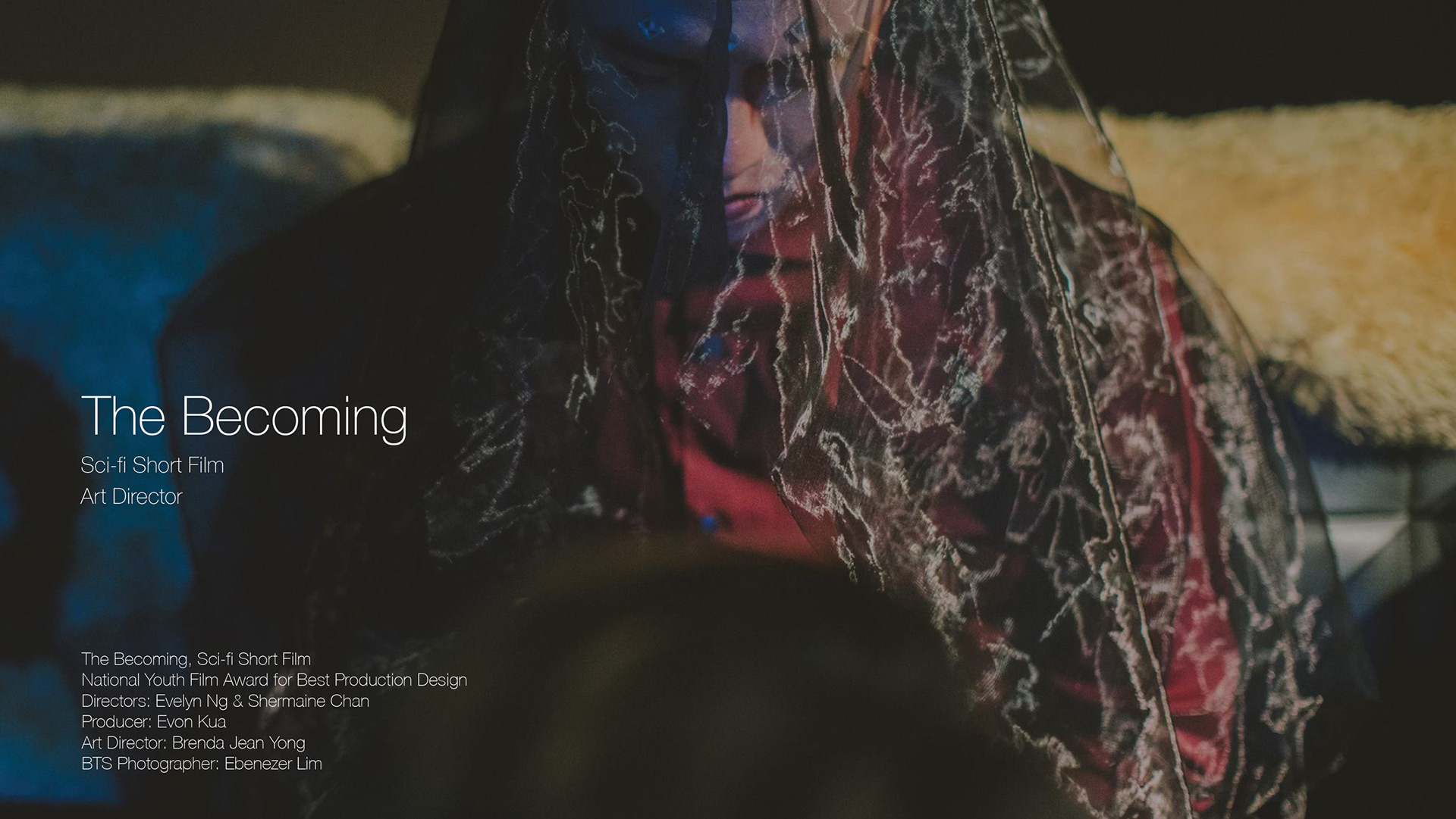 The Becoming, Sci-fi Short Film National Youth Film Award for Best Production Design Directors: Evelyn Ng & Shermaine Chan Producer: Evon Kua Art Director: Brenda Jean Yong BTS Photographer: Ebenezer Lim